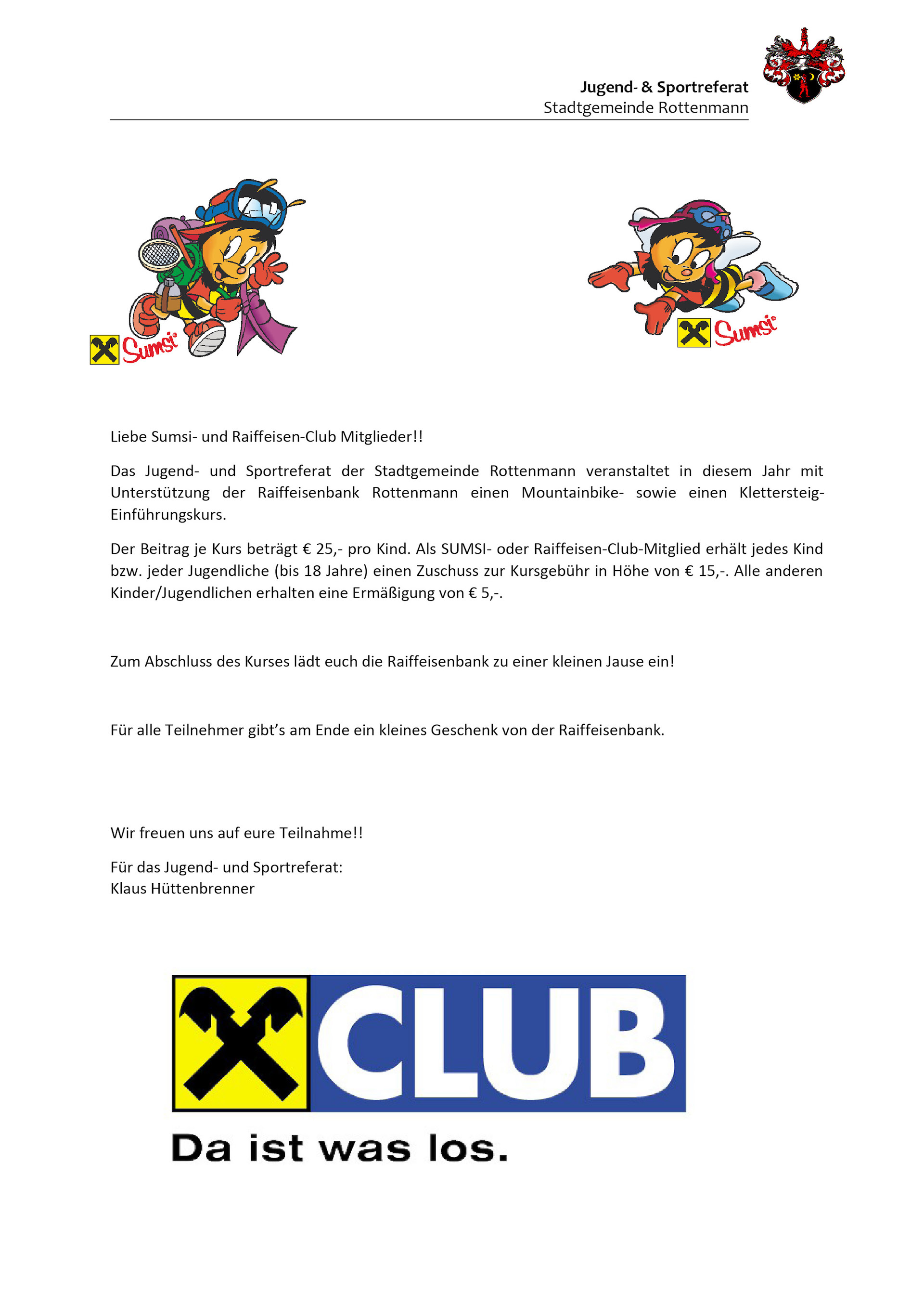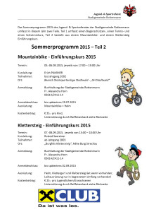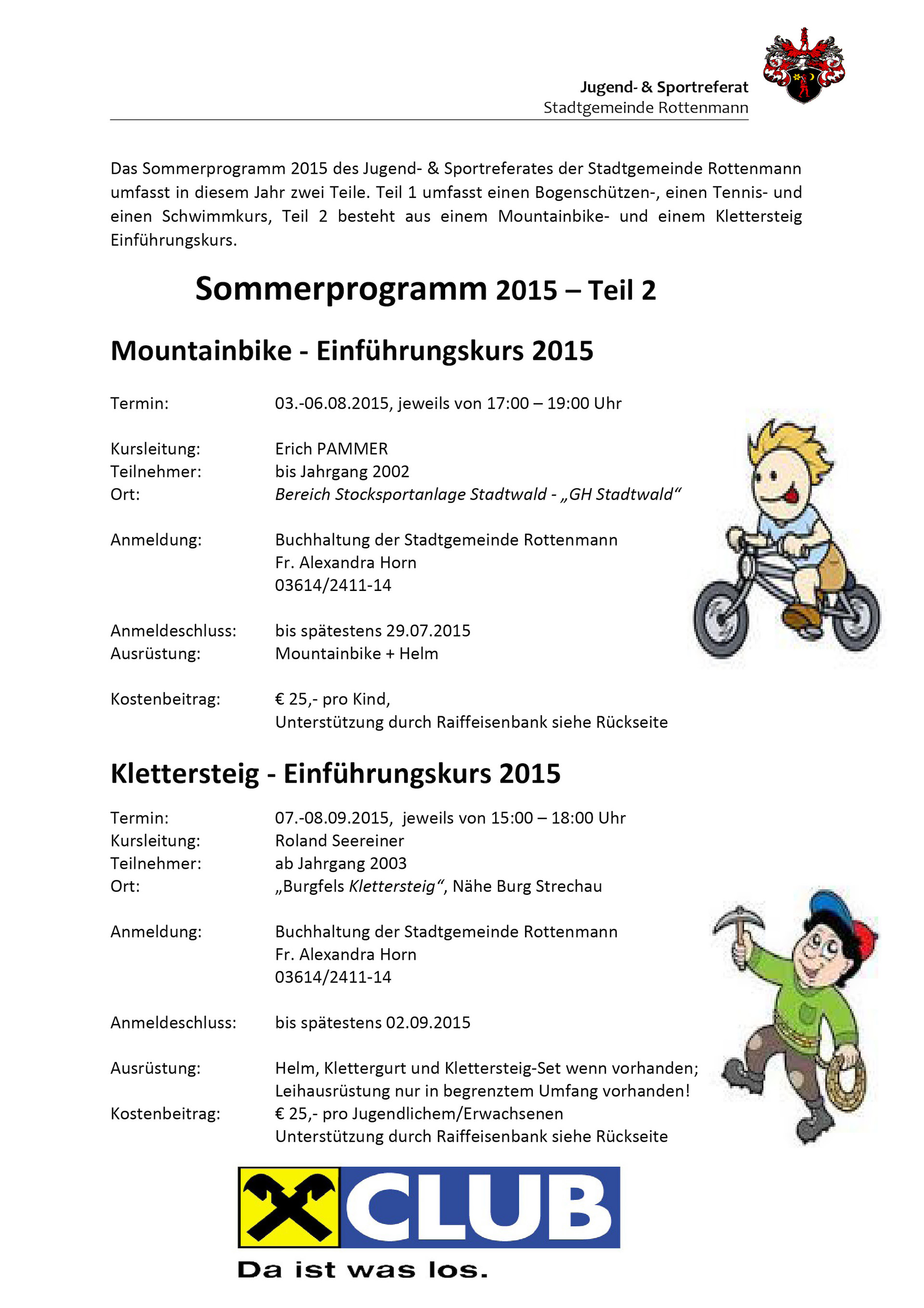 Sommerprogramm des Jugend- & Sportreferates der Stadtgemeinde Rottenmann